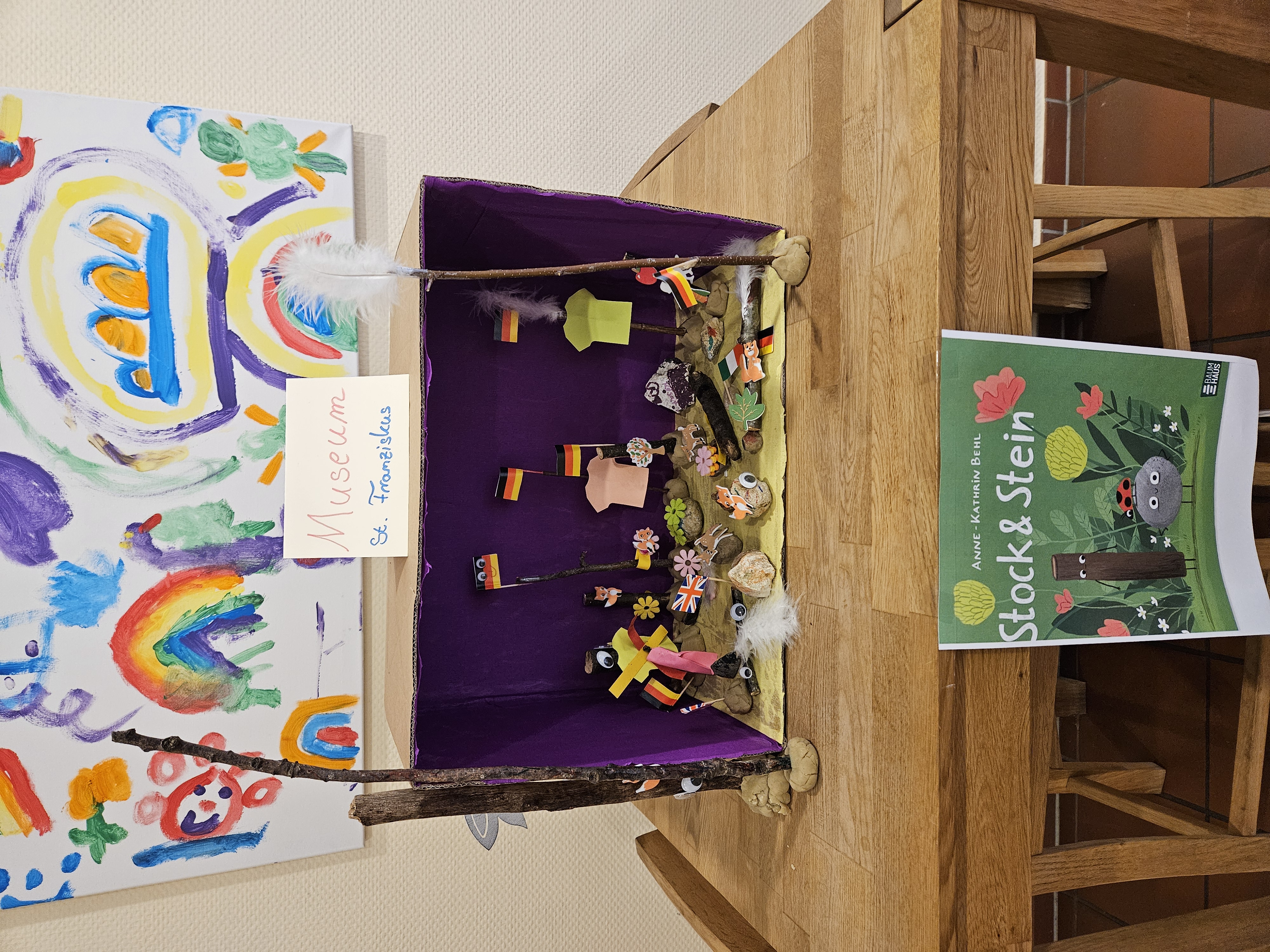 Heute haben unsere “mittleren Kinder” der Schnecken- und der Mäusegruppe mit Steffi ein eigenes Museum für unsere KiTa erstellt. In 14 Tagen sind dann die Igel- und die Marienkäferkinder dran. Wir sind gespannt, was dann tolles entsteht.